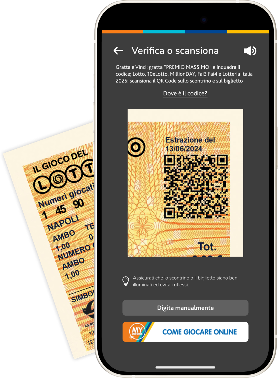 My Lotteries, l’applicazione ufficiale disponibile per smartphone e tablet iOS e Android, permette ai giocatori di controllare se lo scontrino di gioco del Lotto è vincente, inquadrando il QR code dello stesso oppure utilizzando il codice a barre.